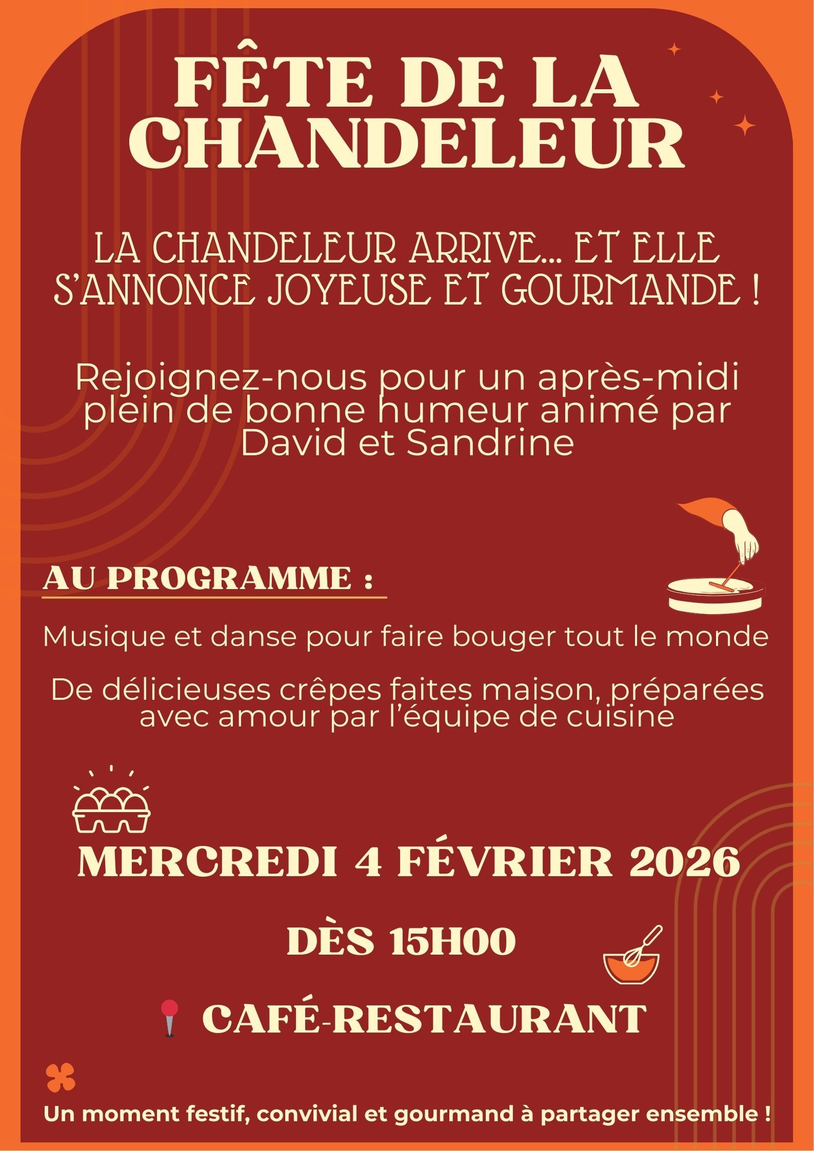 Le mercredi 4 février 2026, dès 15h00, le café-restaurant vous ouvre ses portes pour célébrer la Chandeleur